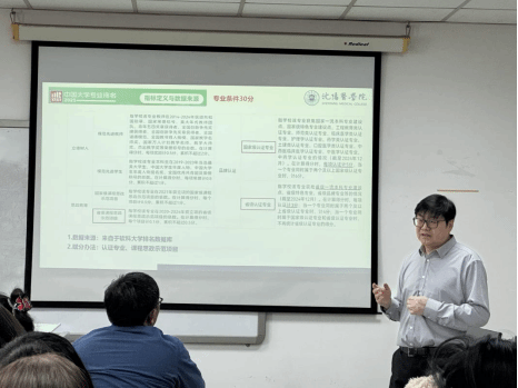 针对学院核心专业,杨主任逐一分析医学信息工程、大数据管理与应用专业在软科专业排名中的表现,指出专业在学科支撑、生源质量、竞赛成果、专业认证等方面的提升空间,并结合标杆院校数据,给出可落地的改进方向。